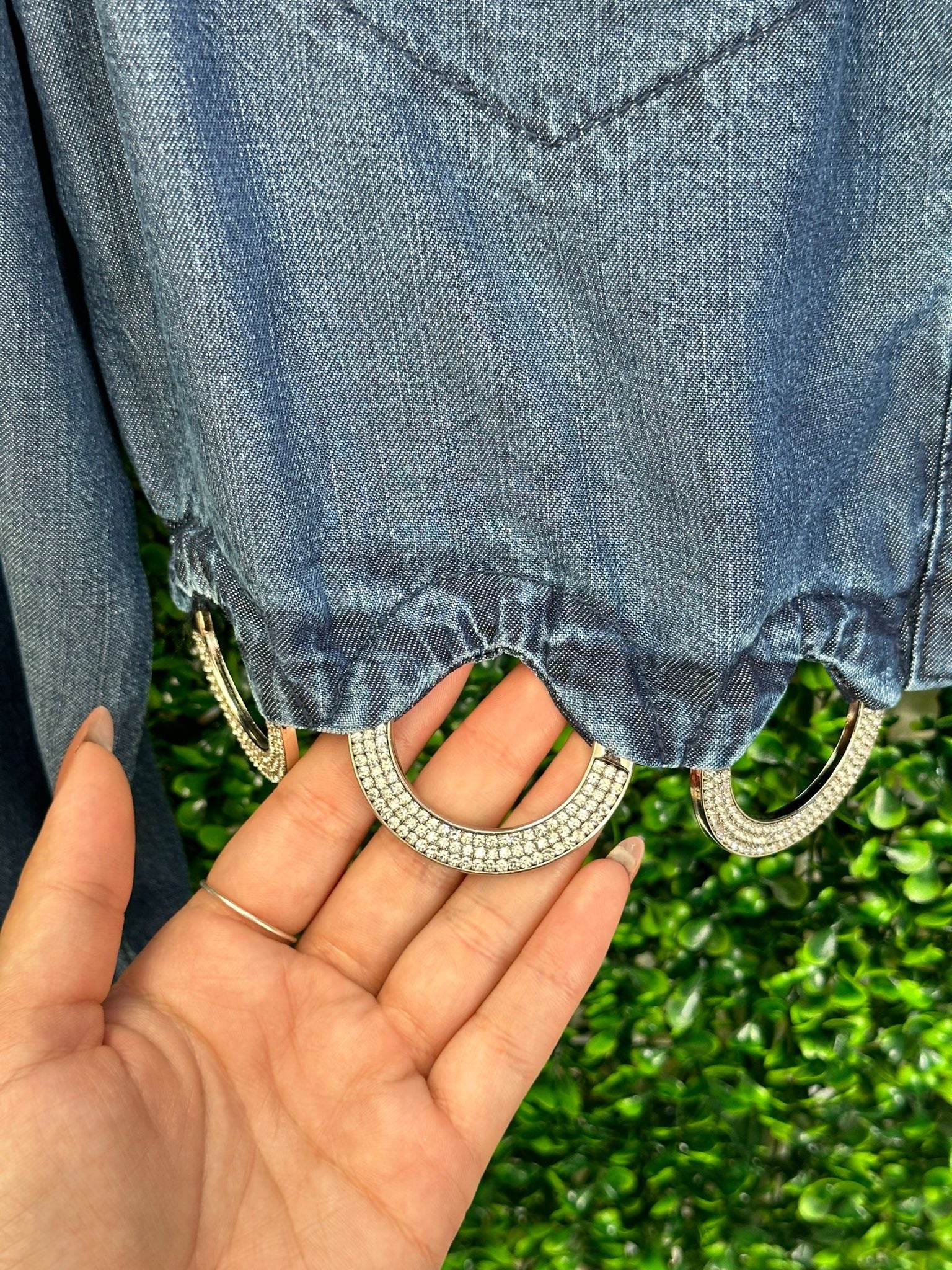 Camisa Jeans de Strass com Argola Razzo - Estilo e Brilho